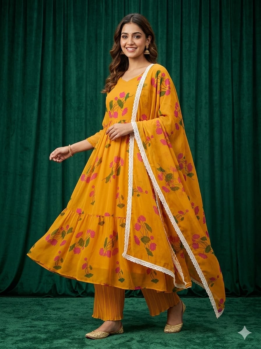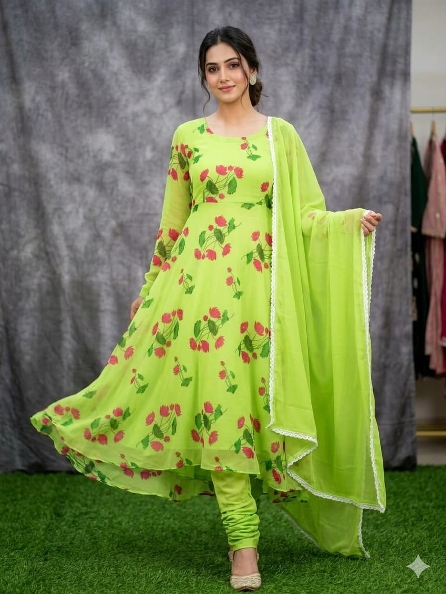 ন্ডিয়ান জর্জেট থ্রি পিস গ্রাউন